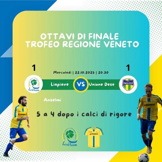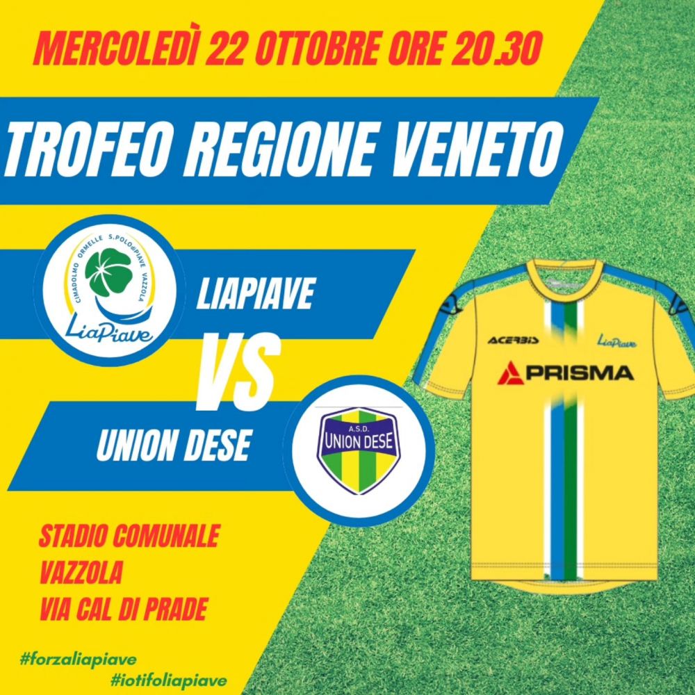 Mercoledì sera, ore 20.30, stadio comunale di Vazzola, ottavi di finale Trofeo Regione Veneto e gara da dentro o fuori fra Liapiave e Union Dese.