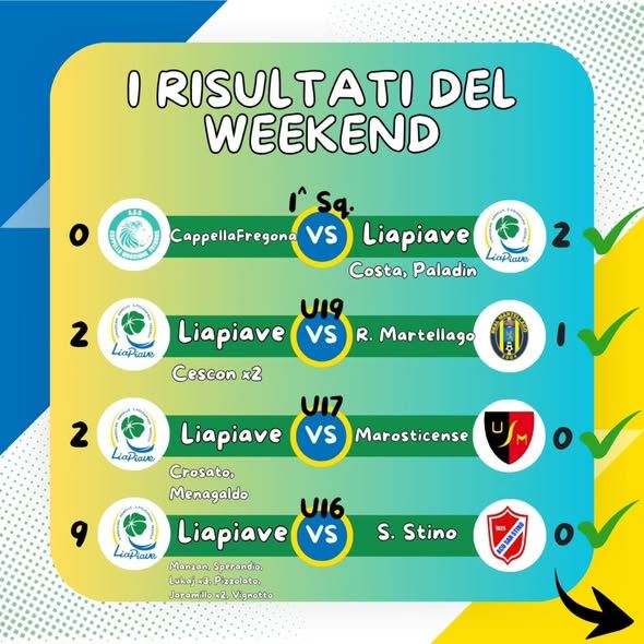 Liapiave - San Stino 9 - 0 (Manzan, Sperandio, Lukaj x3, Pizzolato, Jaramillo x2, Vignotto)